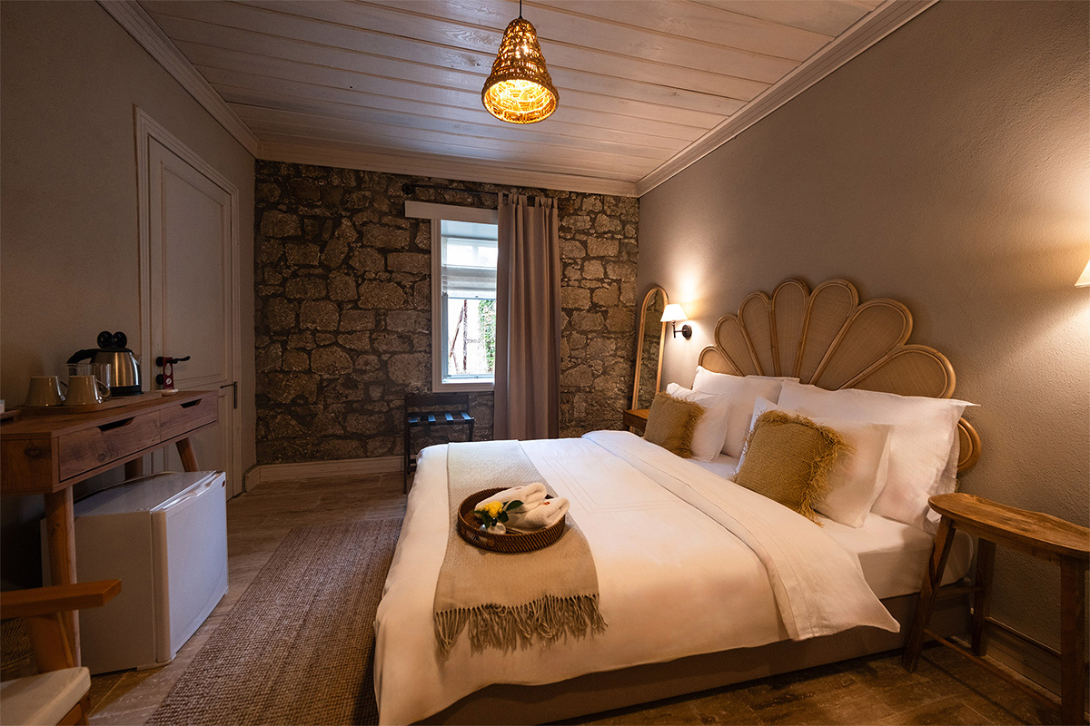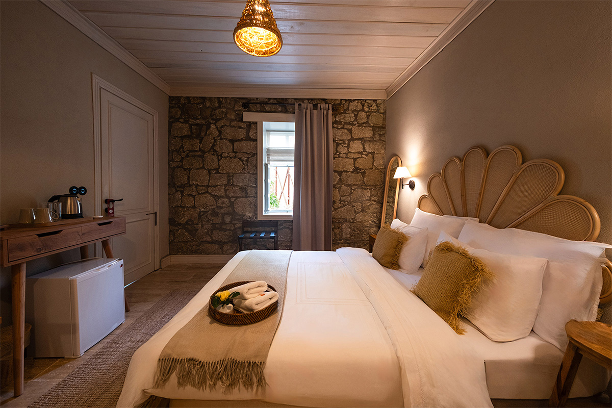 Doğal ışık alan yapısı, köy manzarasına açılan pencereleri ve huzurlu atmosferiyle Topaz Oda, sakinlik ve sadelik arayan misafirler için idealdir.
